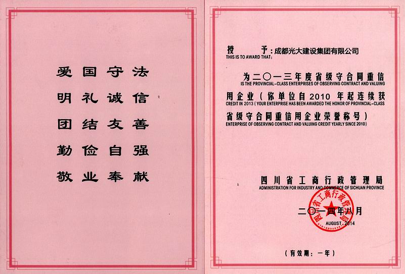 2013年度省級守合同重信用企業