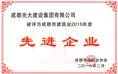 2016年公司被成都市建筑業協會評為“成都市建筑業2015年度優秀企業”