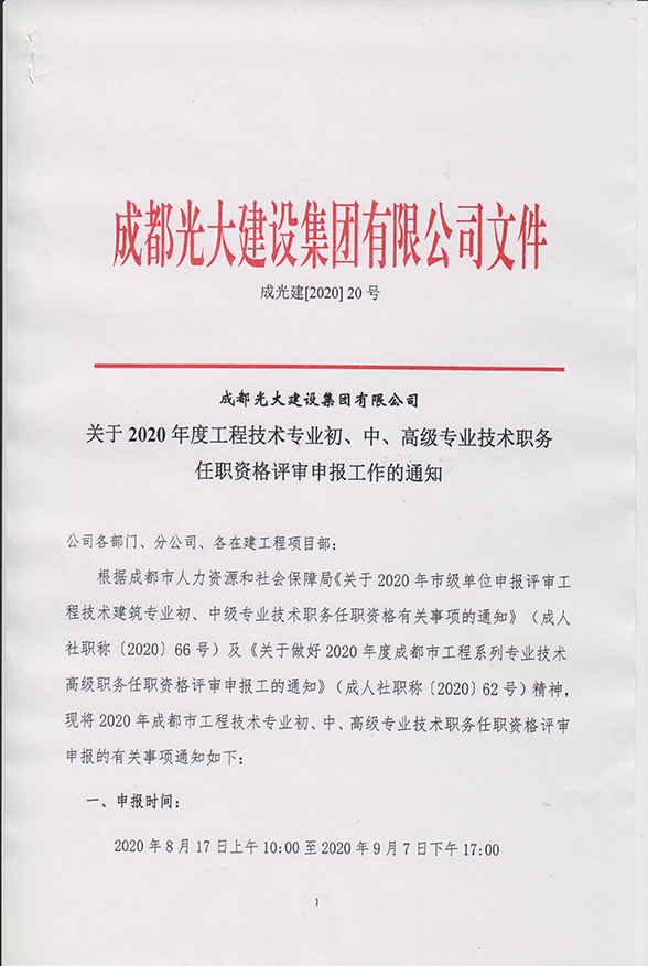 成光建【2020】20號.關于2020年初、中、高級職稱評審申報工作的通知
