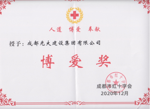 2021年2月2日,都江堰市紅十字會楊碩書記、羅莉秘書長及都江堰市工商聯宋慶國書記、王進會長一行受成都市紅十字會委托到公司,為成都光大建設集團有限公司頒發“博愛獎”獎牌,表彰公司在疫情防控期間作出的貢獻。