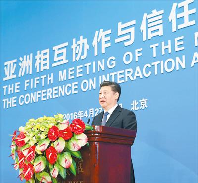 4月28日,亞洲相互協作與信任措施會議第五次外長會議在北京開幕。國家主席習近平出席開幕式并發表重要講話。